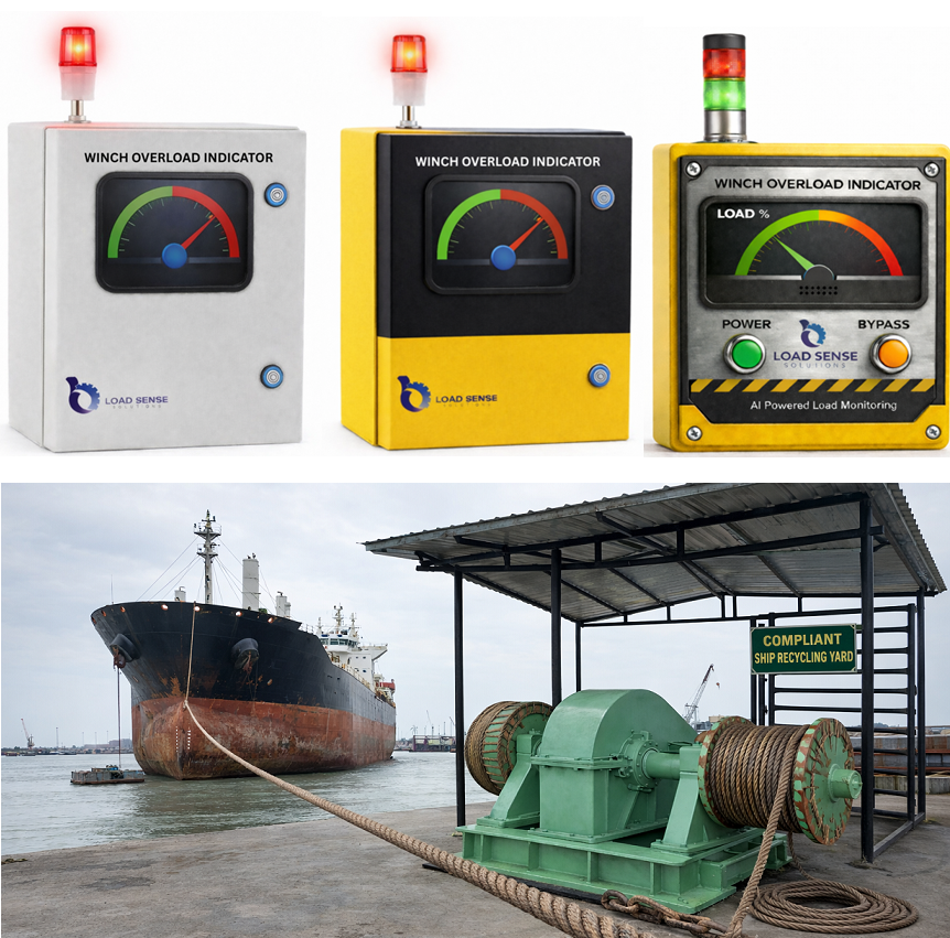 Load Sense Solutions proudly presents India’s first AI-powered Overload Indicator System designed exclusively for winches and pulling machines. Engineered specifically for ship recycling yards, the system ensures safe and controlled ship-pulling operations by preventing overloading and optimizing performance through intelligent, data-driven monitoring.